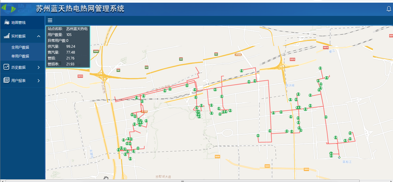 蘇州藍天是一家采用清潔能源天然氣為燃料的大型熱電聯(lián)產(chǎn)混合所有制企業(yè)。該公司熱網(wǎng)系統(tǒng)由上海多路公司承辦于2005年并于當年投入使用,目前熱用戶已達到近100家熱用戶,2019年熱網(wǎng)系統(tǒng)換代更新為由我公司基于Java平臺采用B/S結構自主開發(fā)的系統(tǒng),該系統(tǒng)兼容多種GPRS_DTU與流量積算儀儀表協(xié)議以及第三方系統(tǒng)接口功能(DCS、MIS、SIS等),同時支持移動終端訪問。